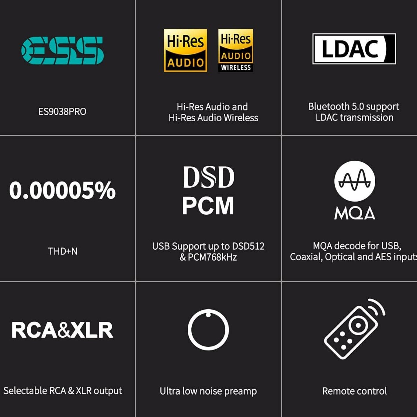 MQA Decoding Support across USB, Coaxial, Optical, and AES Inputs.